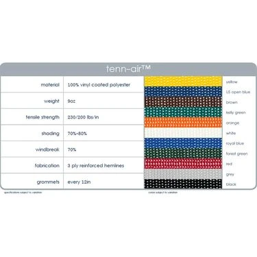 The preferred choice of the U.S. Open, Putterman’s featured Tenn-Air stands up better than any other windscreen on the market to weather elements and standard abrasion from player activity. Made from a 9oz vinyl coated polyester, Tenn-Air is easy to install and highly durable. The adhesion of the vinyl to the polyester threads is of the highest quality so the vinyl coating will not chip or wear away.